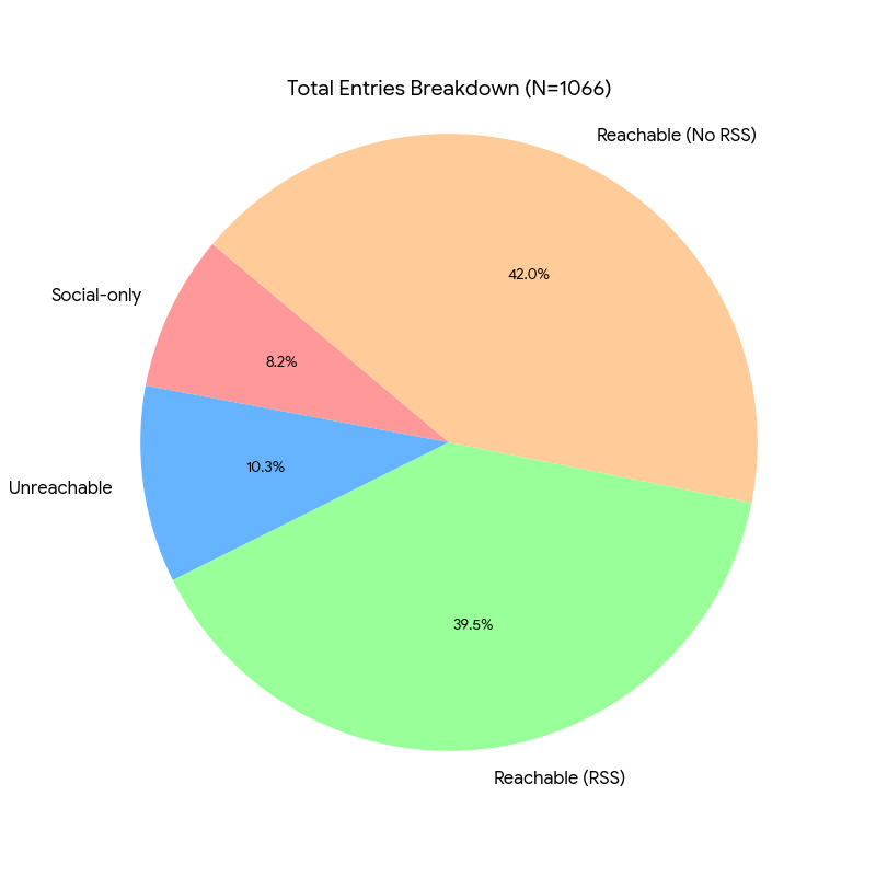 The site collected data for about half a year before some issues with the Firebase configuration it was initialized with. I a) did not care so much and b) had such a big list already compiled that I never fixed that. So, the pulls came to a halt, and the site froze with a list of 1066 websites, which is still accessible.